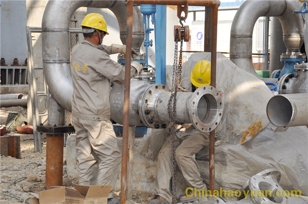 目前,航天爐項(xiàng)目二期工程的氣化工段主體工藝管道配接已完成,儀表調(diào)節(jié)閥安裝就位后,即可進(jìn)入吹除、試壓、試漏、試車階段??辗止ざ卫湎洹⒓状枷垂ざ未笮退?、合成工段設(shè)備均已安裝就位,并完成校正工作,內(nèi)、外管道已安裝完成80%。航天爐項(xiàng)目二期工程變換工段采用了全國(guó)首套“等溫水移熱”變換工藝,此項(xiàng)工藝與以往普通工藝相比,具有系統(tǒng)阻力小、副產(chǎn)蒸汽量多、熱量利用合理等優(yōu)點(diǎn),該工段目前土建已結(jié)束,正進(jìn)行設(shè)備的安裝、調(diào)試。