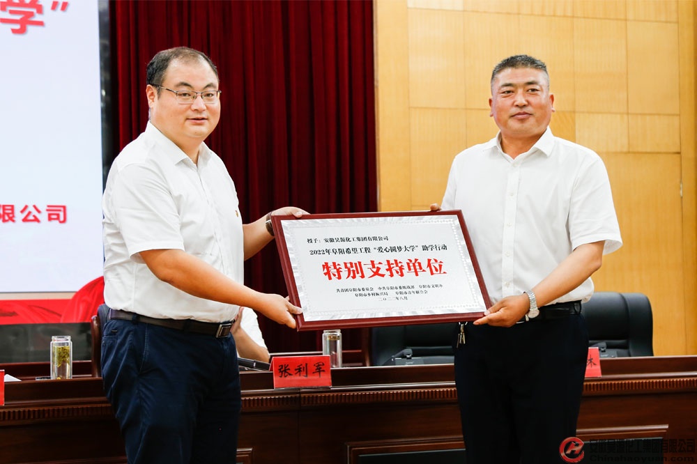 隨后,團市委書記汝磊向昊源公司頒發(fā)2022年阜陽希望工程“愛心圓夢大學”助學行動特別支持單位獎牌,感謝昊源公司多年來對愛心助學行動等公益事業(yè)的大力支持。