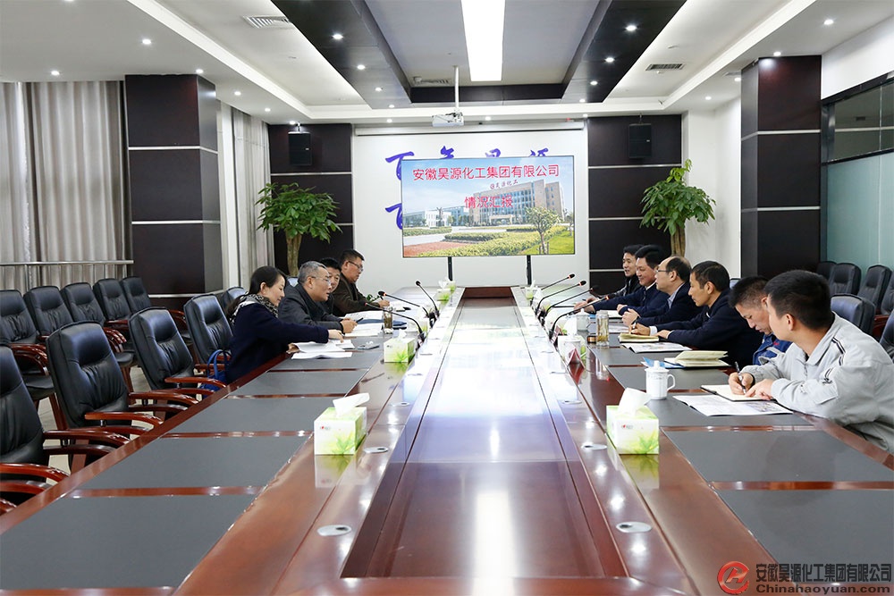 在公司會議室,高玉磊詳細匯報了昊源公司生產(chǎn)經(jīng)營、安全環(huán)保工作、數(shù)字化工廠建設、創(chuàng)建工業(yè)和信息化領域標準化示范企業(yè)工作等情況。