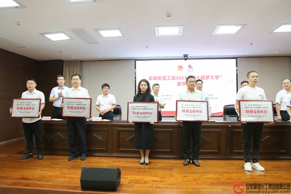 9月1日上午,阜陽市希望工程2023“愛心圓夢大學(xué)”獎牌發(fā)放儀式在市政府會議室舉行,昊源公司被授予“愛心圓夢大學(xué)特別支持單位”稱號,公司團(tuán)委書記朱梅代表公司領(lǐng)取獎牌。